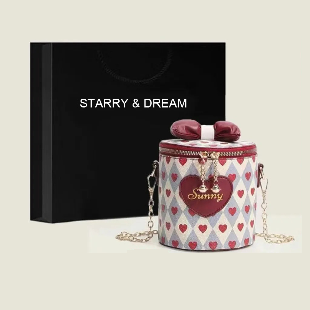 STARRY&DREAM正品時尚甜美風圓筒可愛少女愛心貓耳朵單肩斜挎包