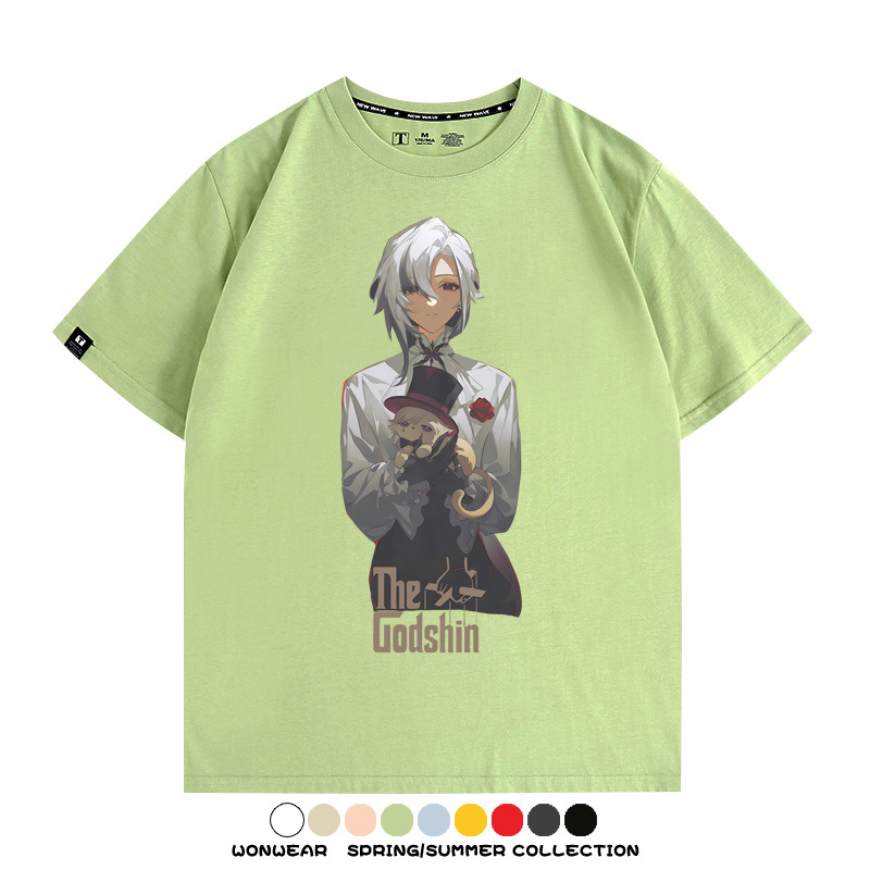 原神遊戲阿蕾奇諾愚人眾僕人周邊短袖T恤衫上衣夏季男士純棉寬鬆