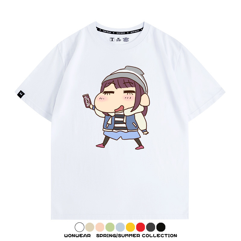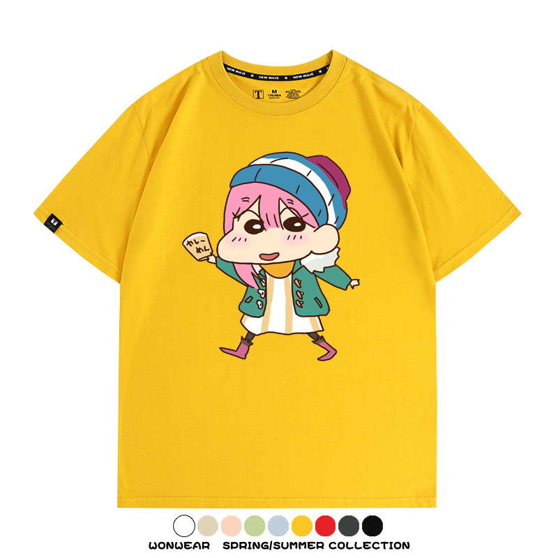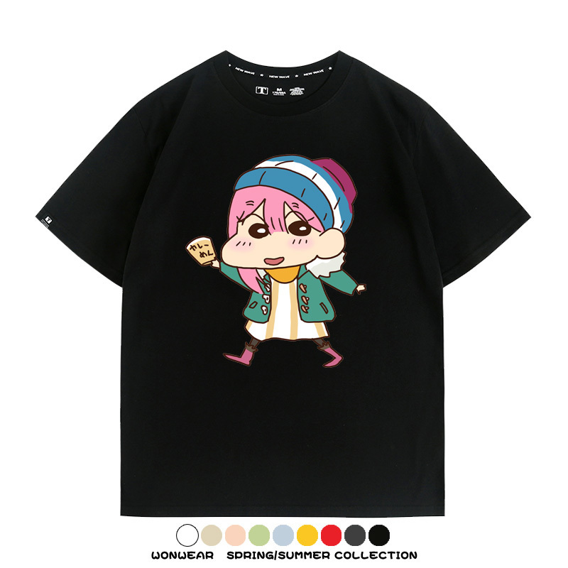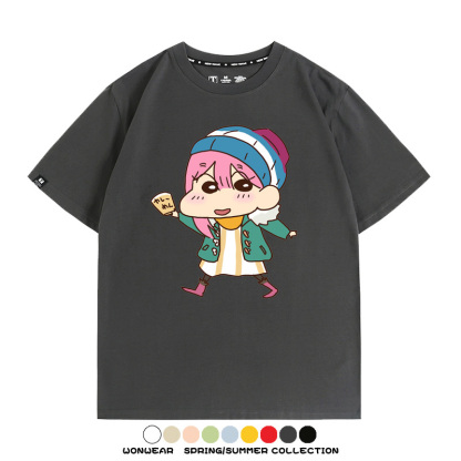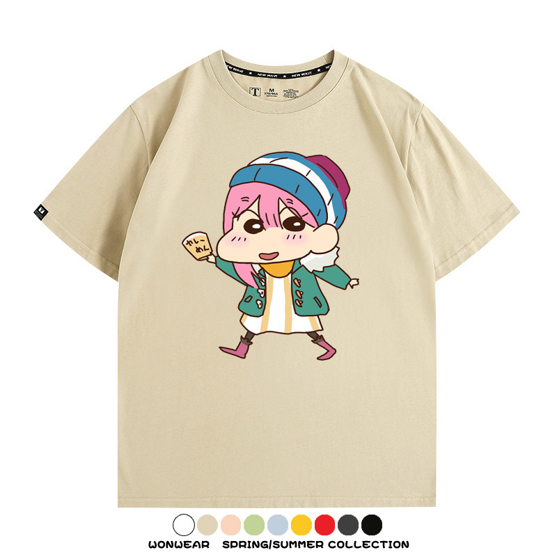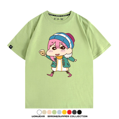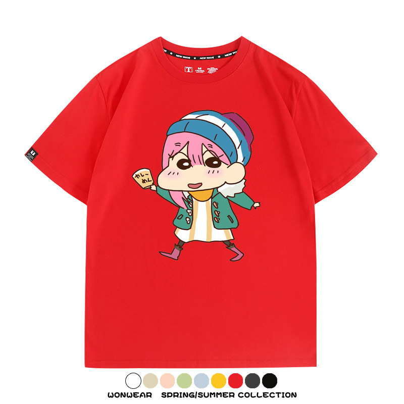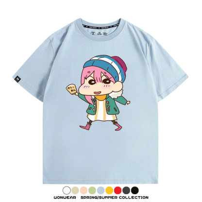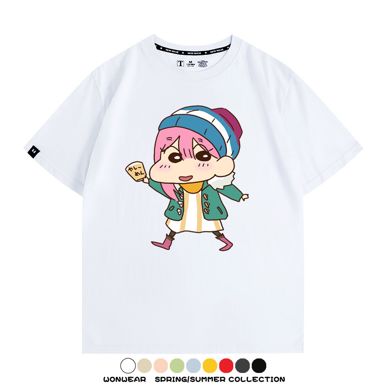 搖曳露營聯名蠟筆小新動漫周邊純棉上衣服卡通二次元短袖t恤衫男