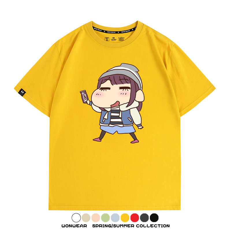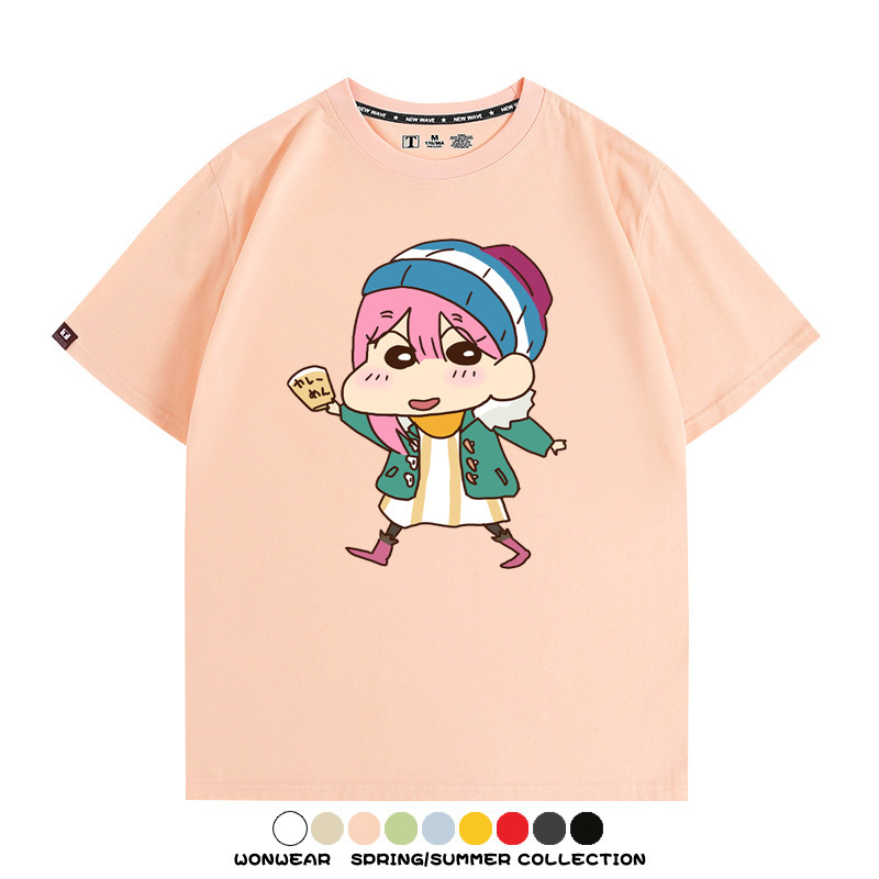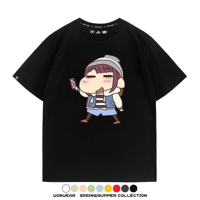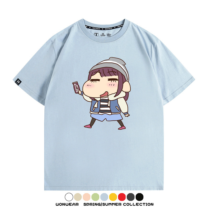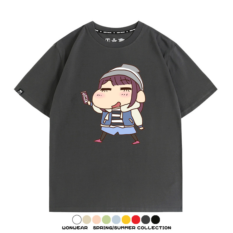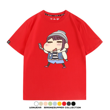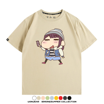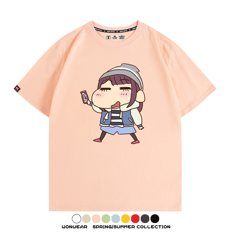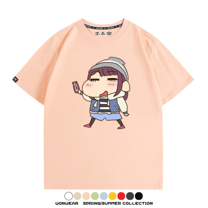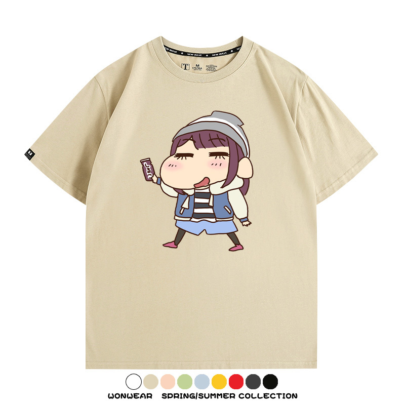 搖曳露營聯名蠟筆小新動漫周邊純棉上衣服卡通二次元短袖t恤衫男