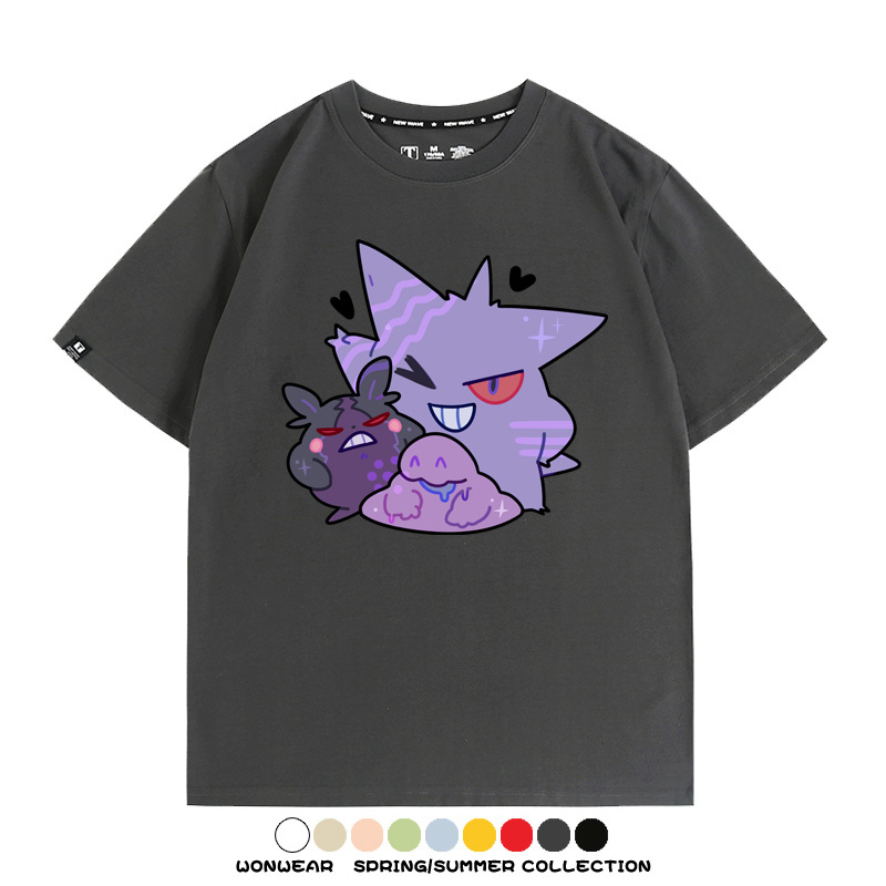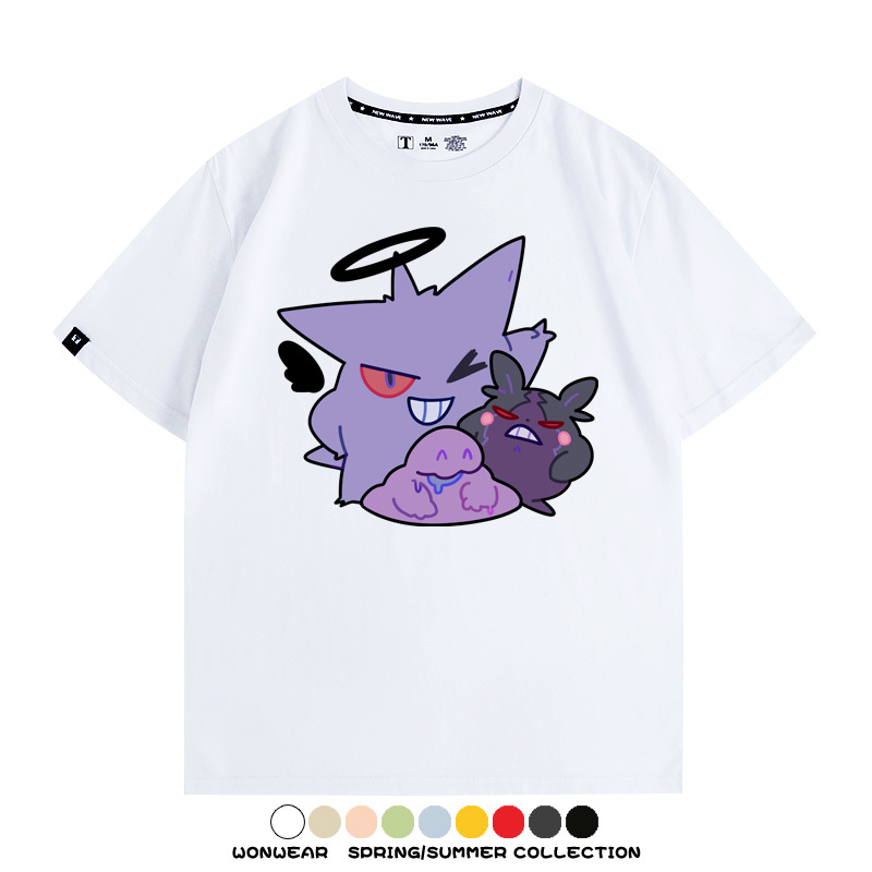 星之卡比鬼斯通耿鬼聯名卡通情侶裝t恤衫夏半袖純棉短袖上衣服男