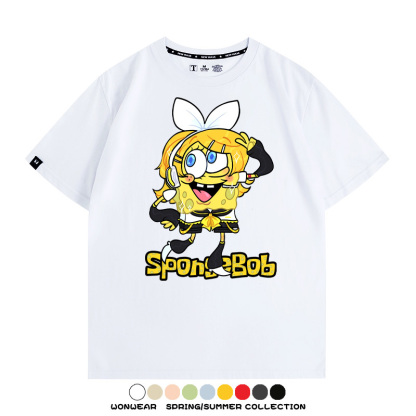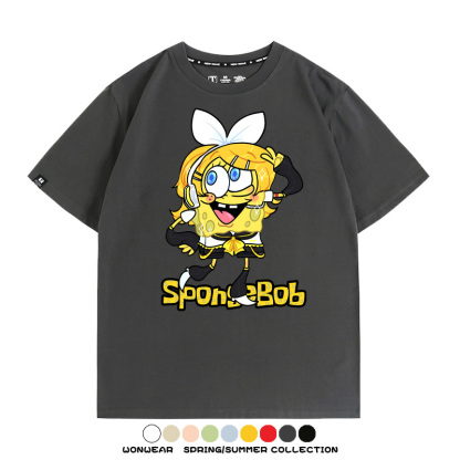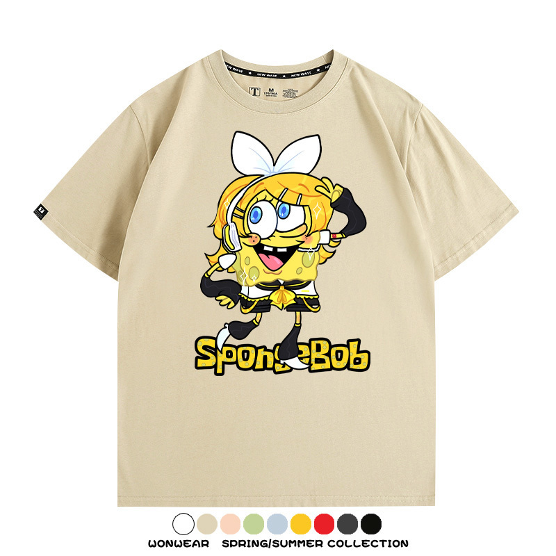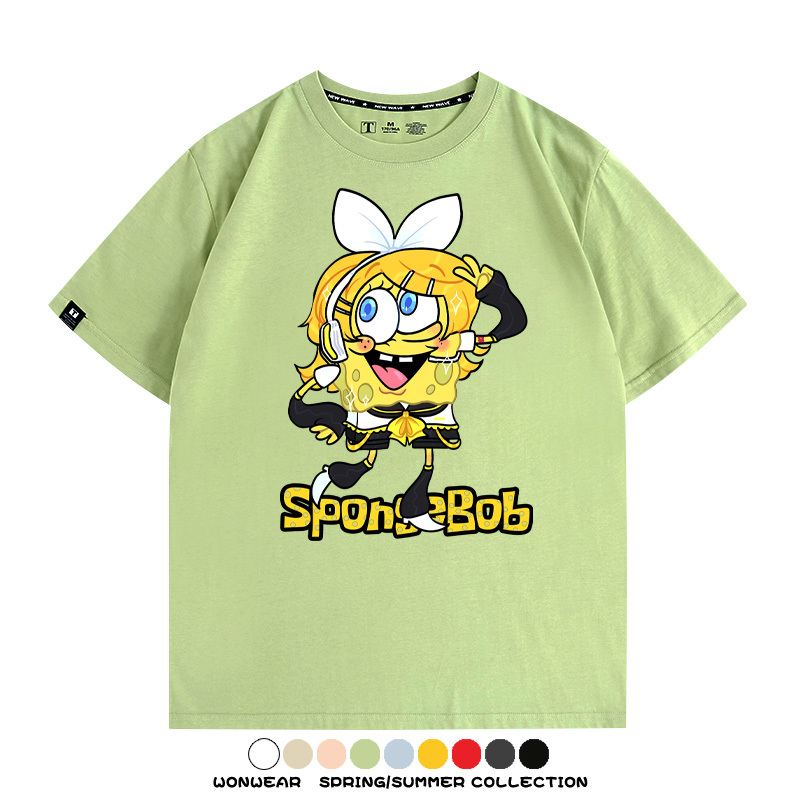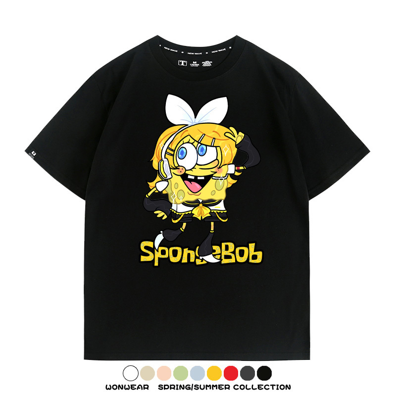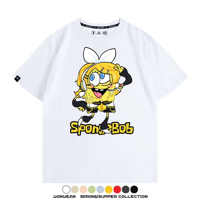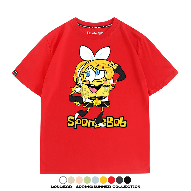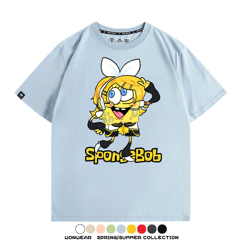 海綿寶寶聯名鏡音雙子情侶裝t恤衫卡通動漫周邊純棉短袖上衣服男