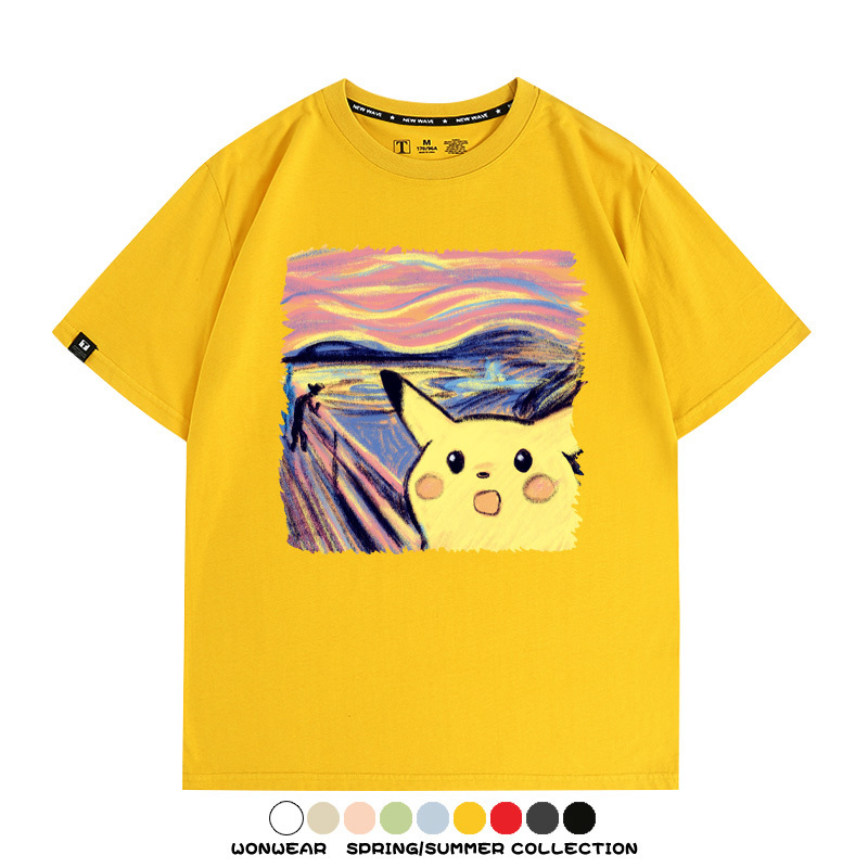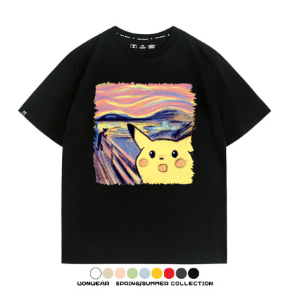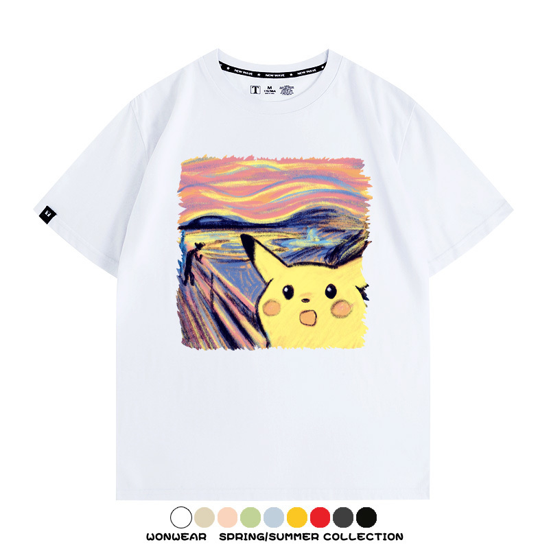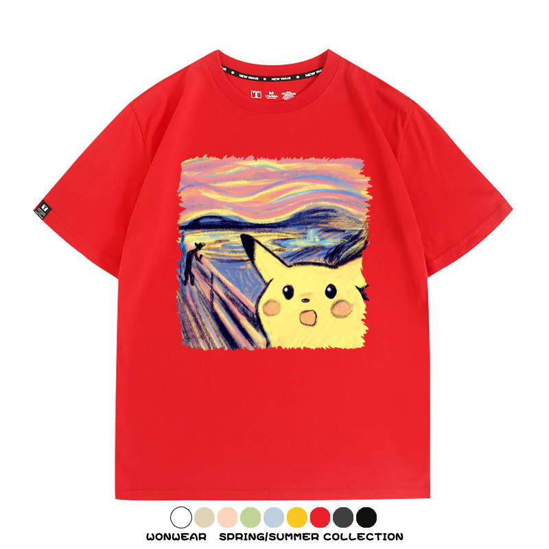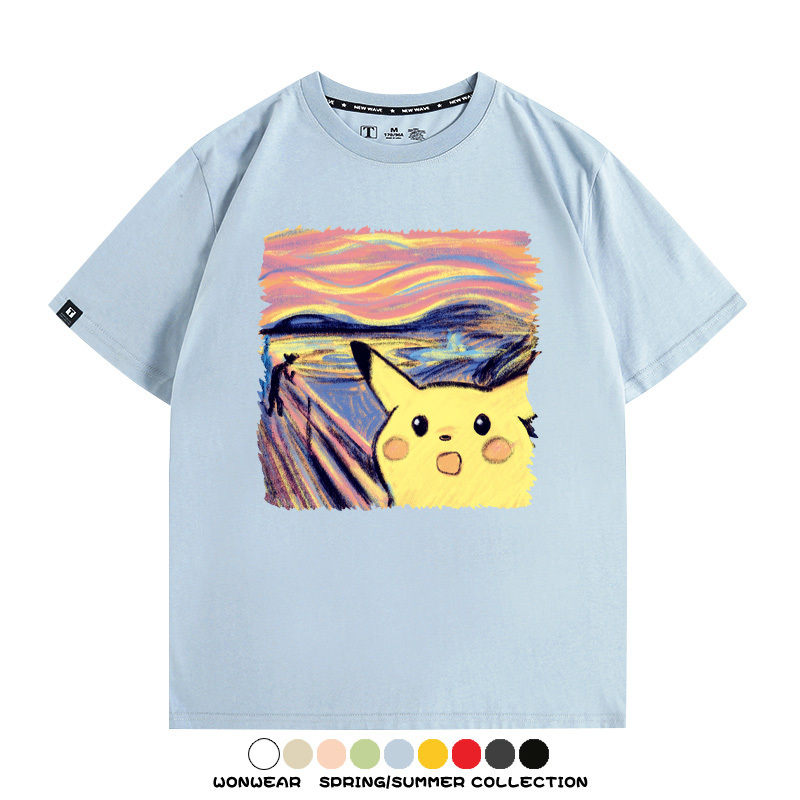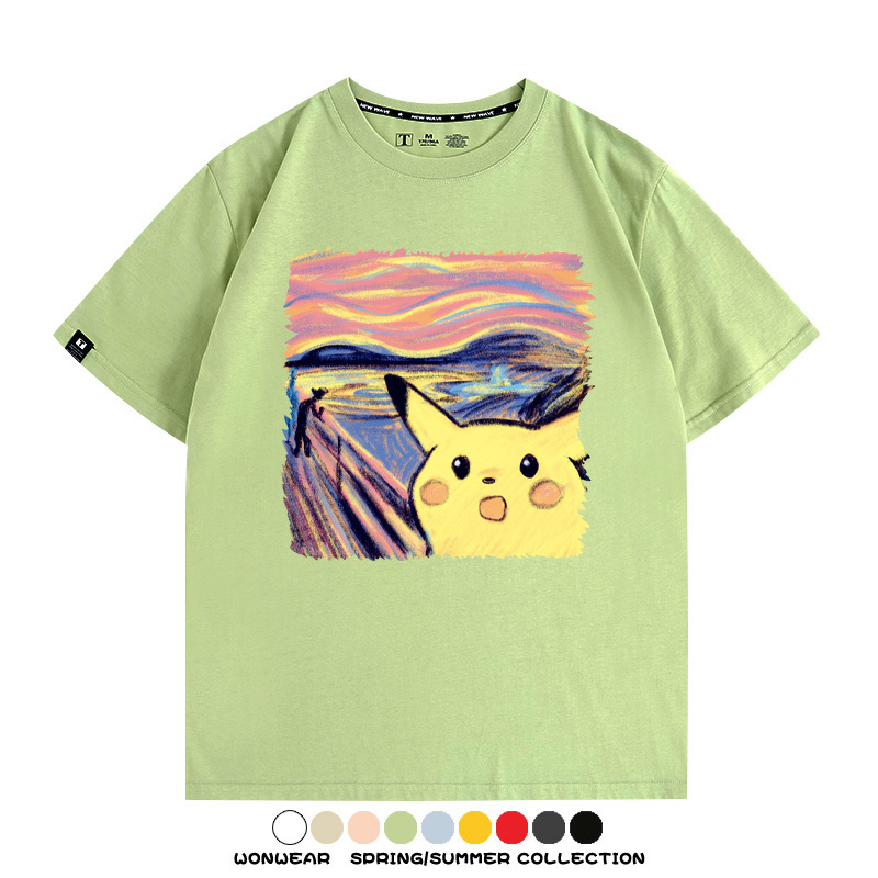 皮卡丘吶喊聯名精靈寶可夢短袖上衣服卡通動漫周邊t恤衫情侶半袖
