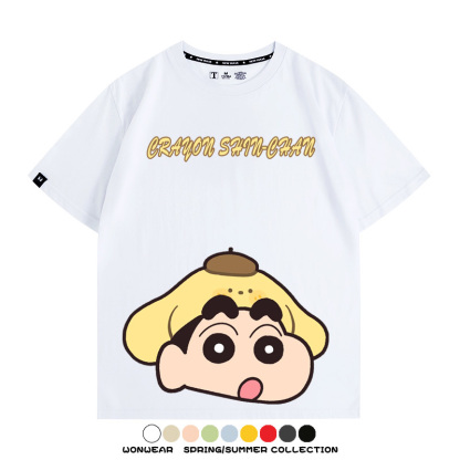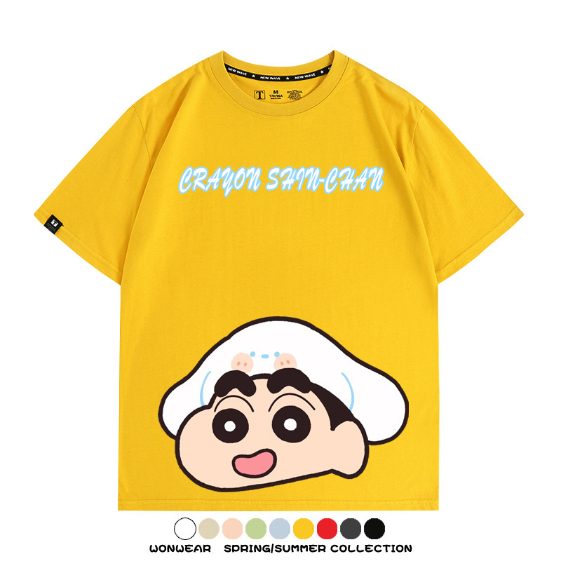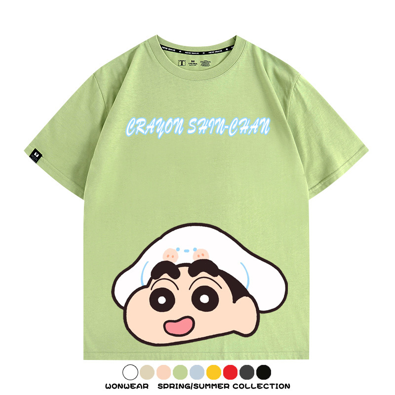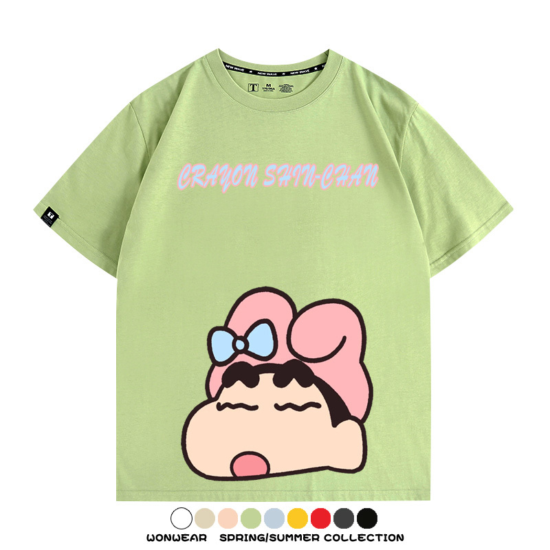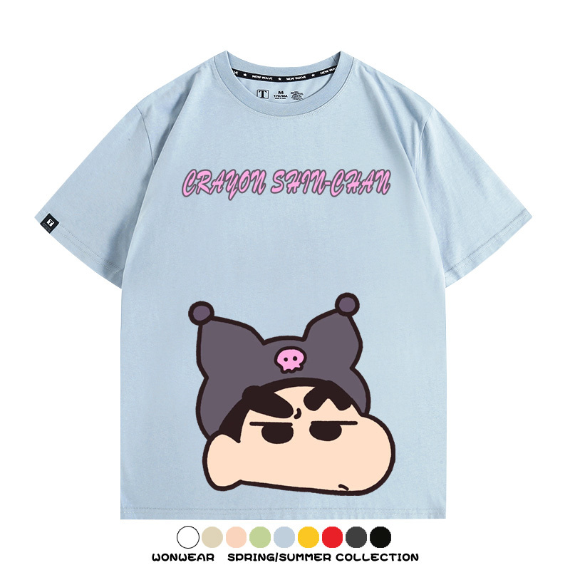 蠟筆小新動漫聯名情侶裝三麗鷗周邊卡通短袖上衣服夏純棉半袖t恤