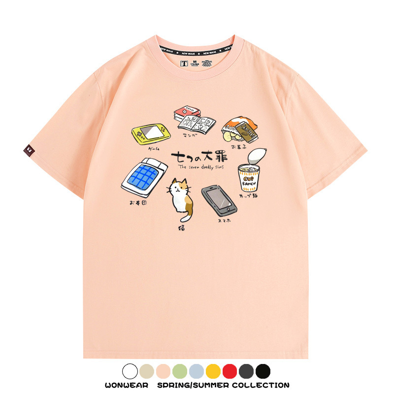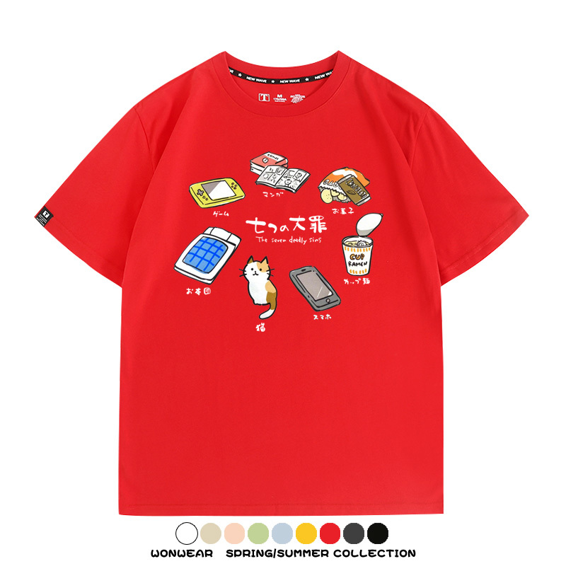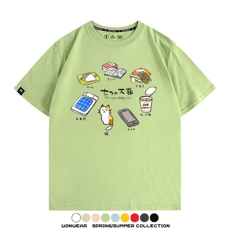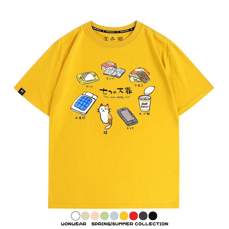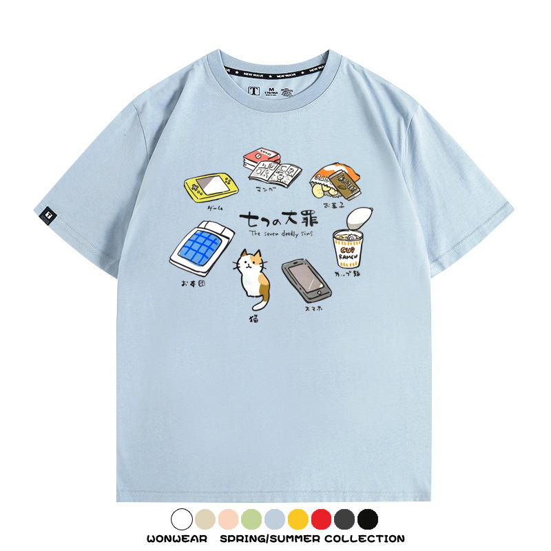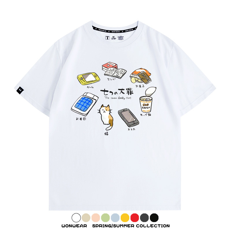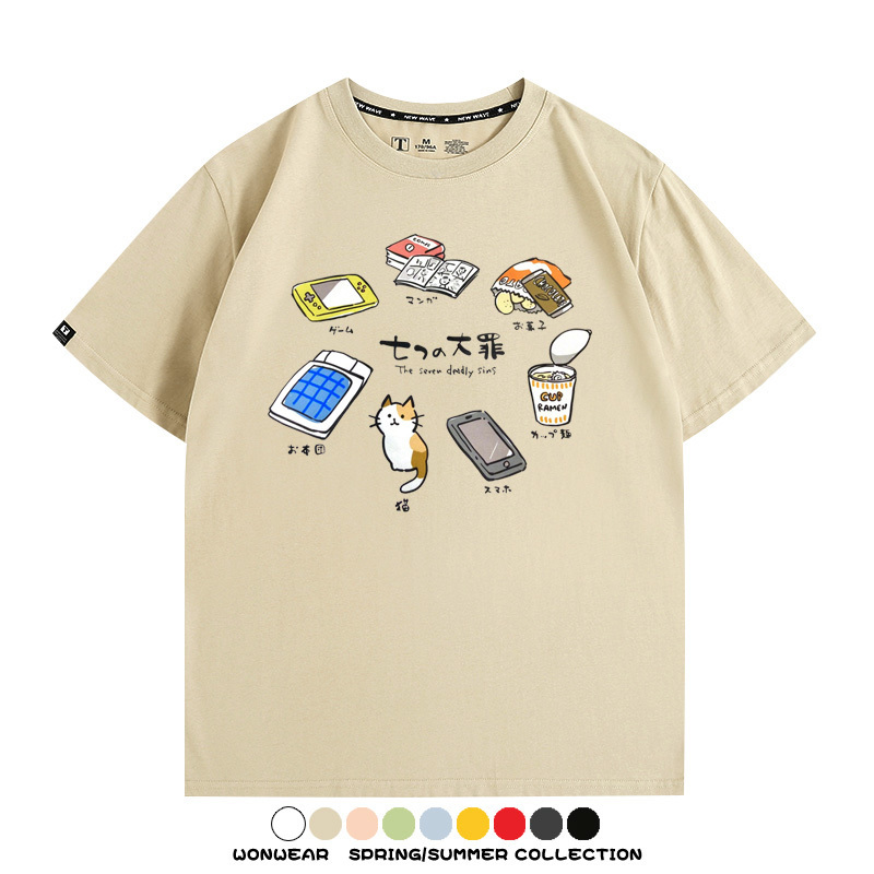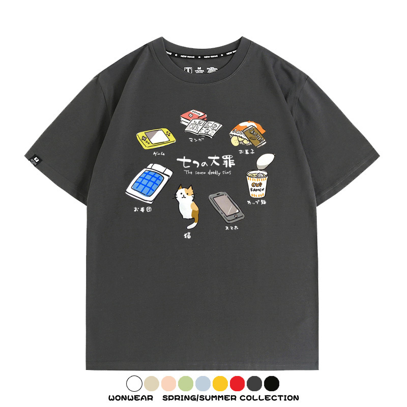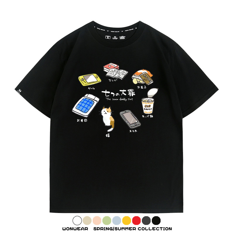 Office workers prank the Seven Deadly Sins of Homework, Japanese style men's trendy short-sleeved tops, summer pure cotton T-shirts, loose and versatile, trendy