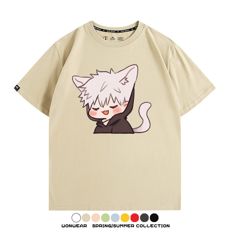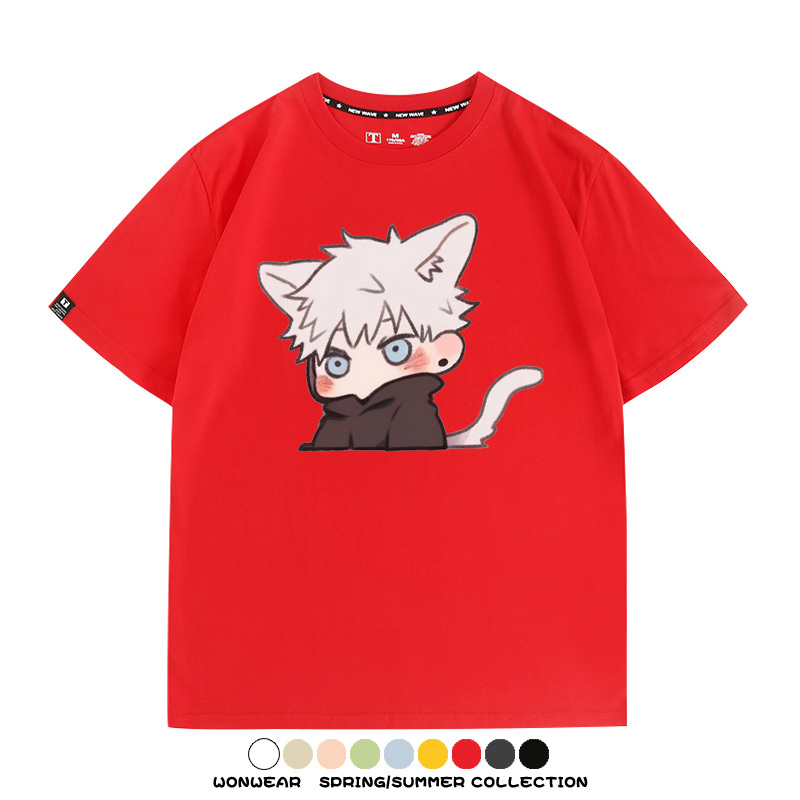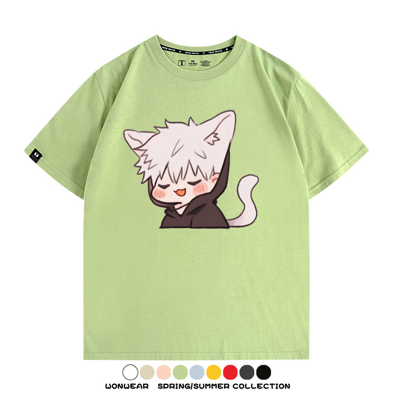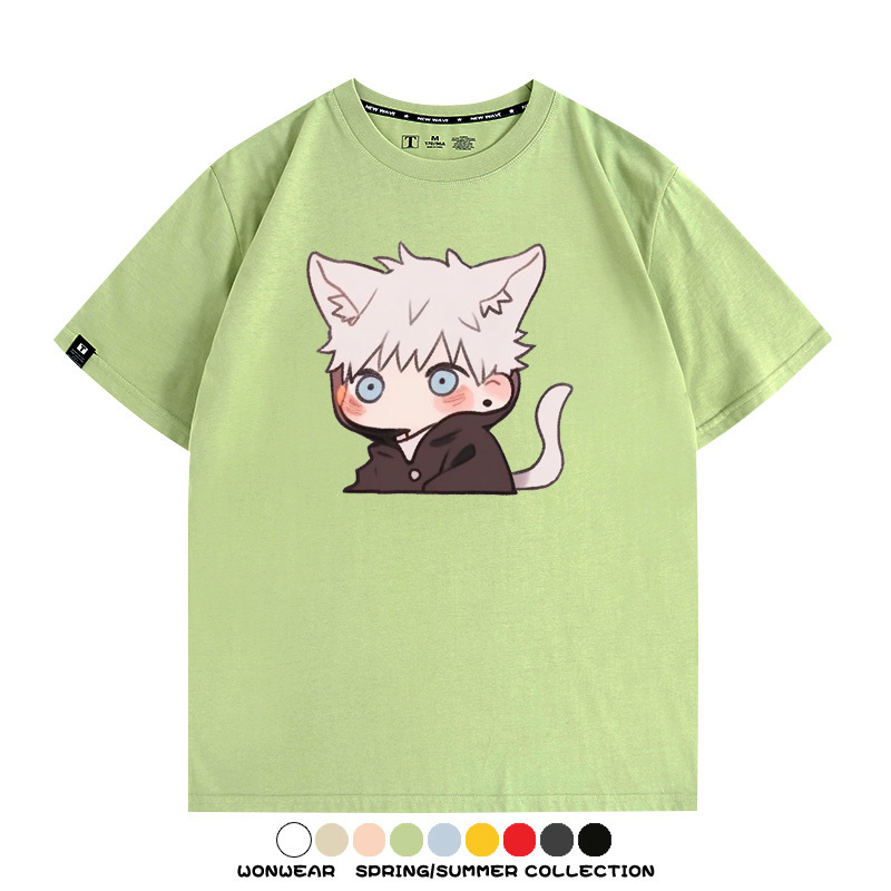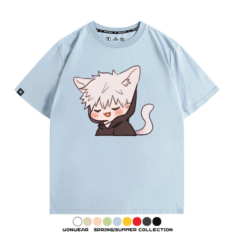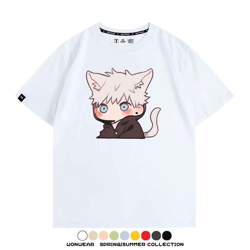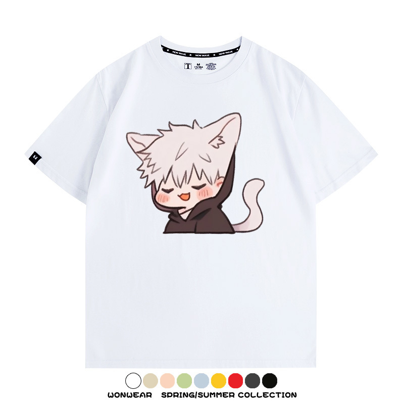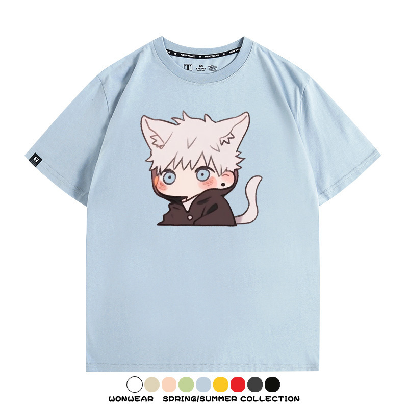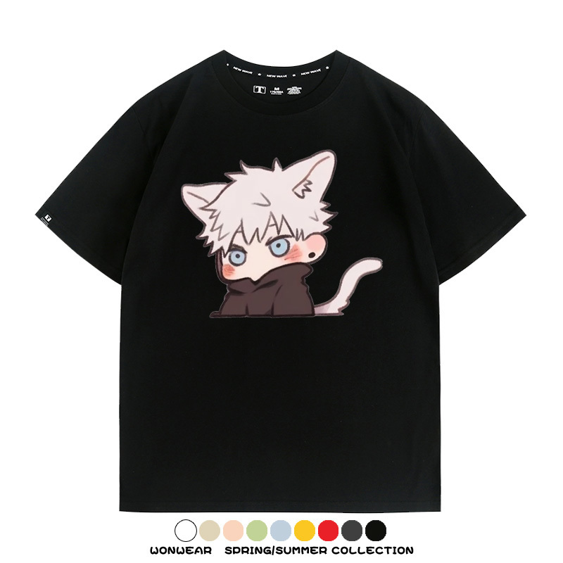 Spell Return Anime Cat Gojo Satoru Cute Cartoon Couple Peripheral Short Sleeve Summer Men's Pure Cotton T-Shirt Loose