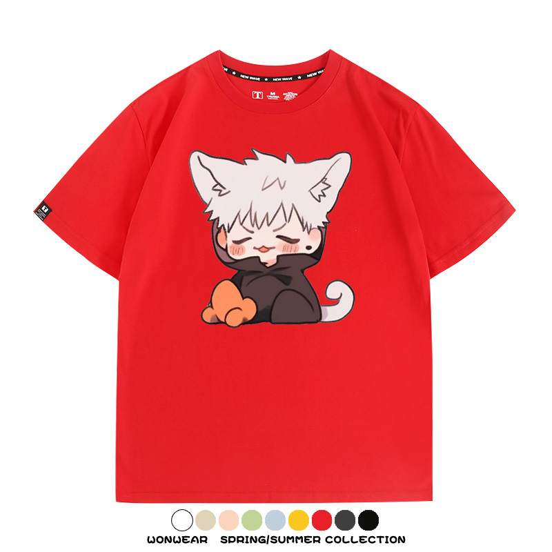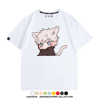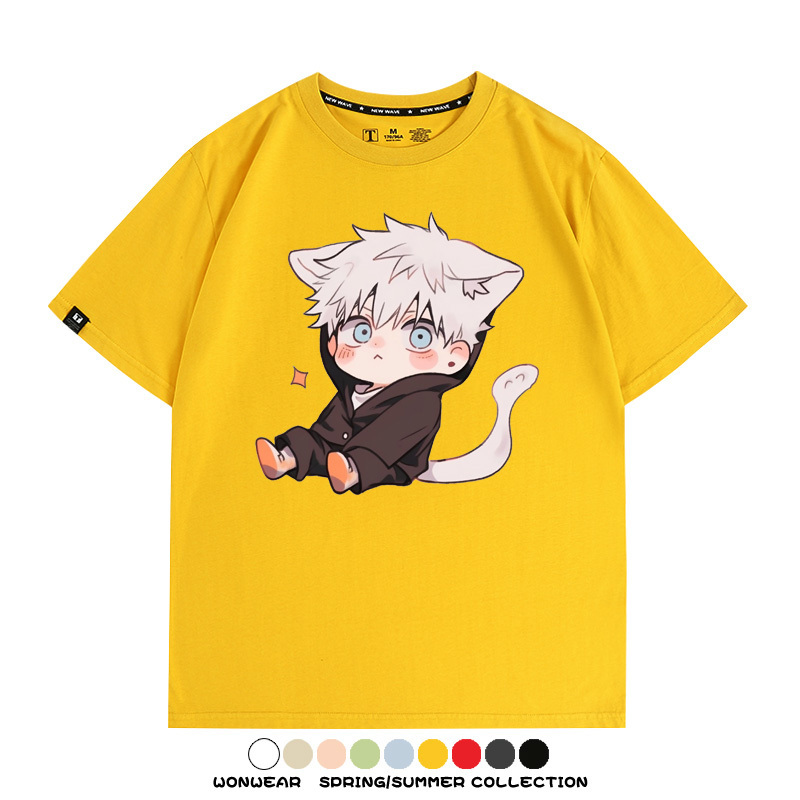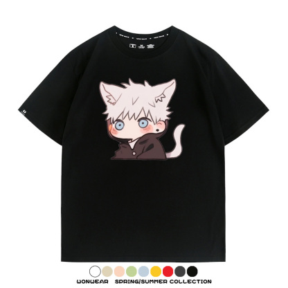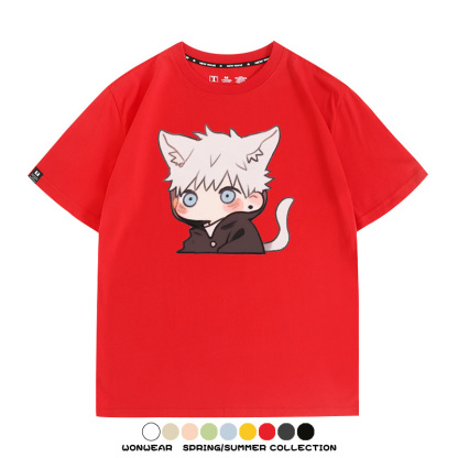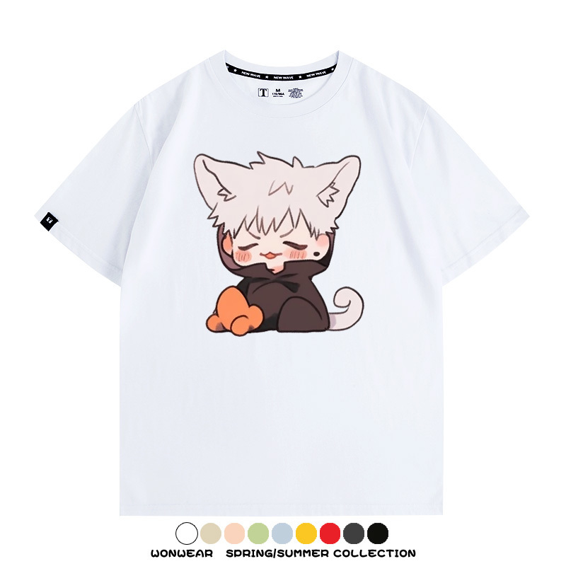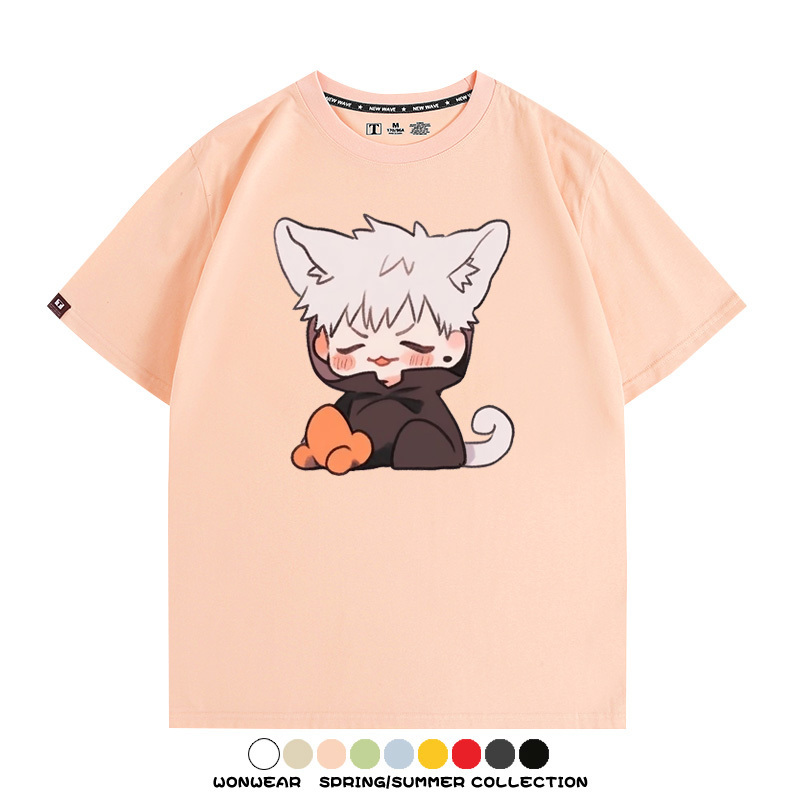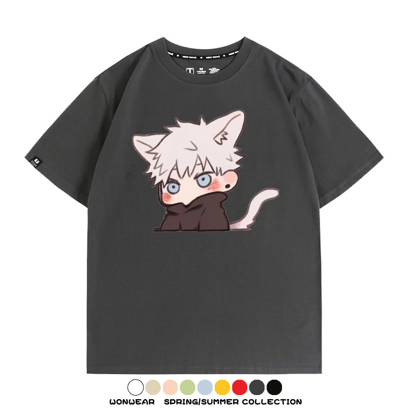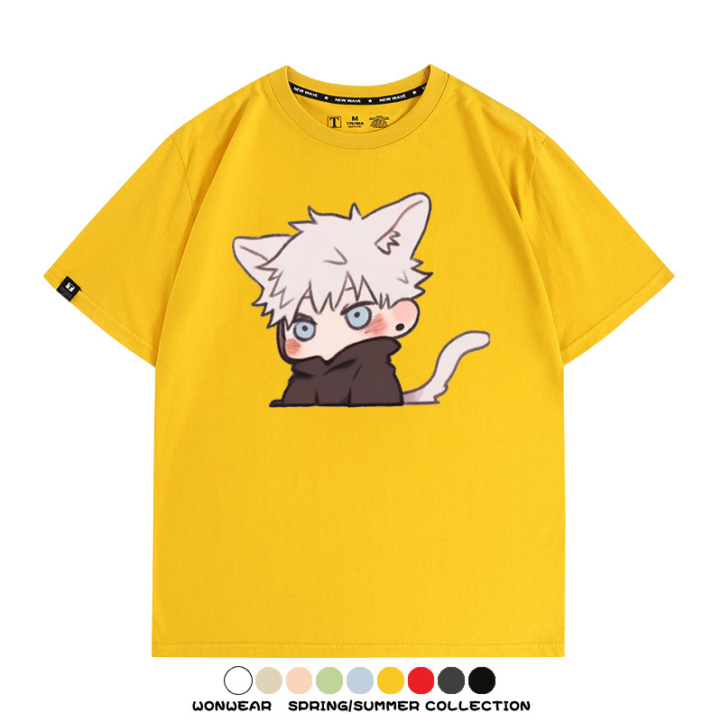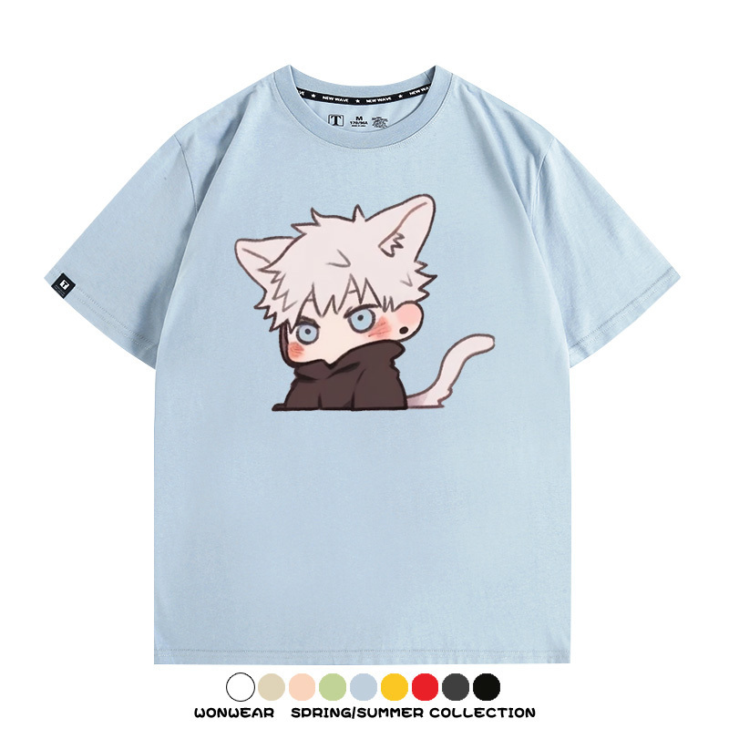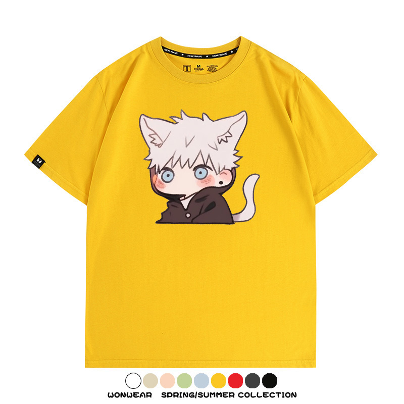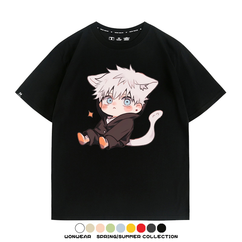 Spell Return Anime Cat Gojo Satoru Cute Cartoon Couple Peripheral Short Sleeve Summer Men's Pure Cotton T-Shirt Loose