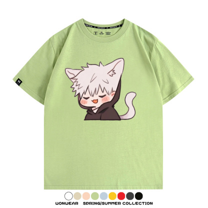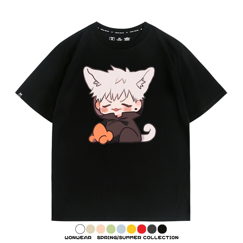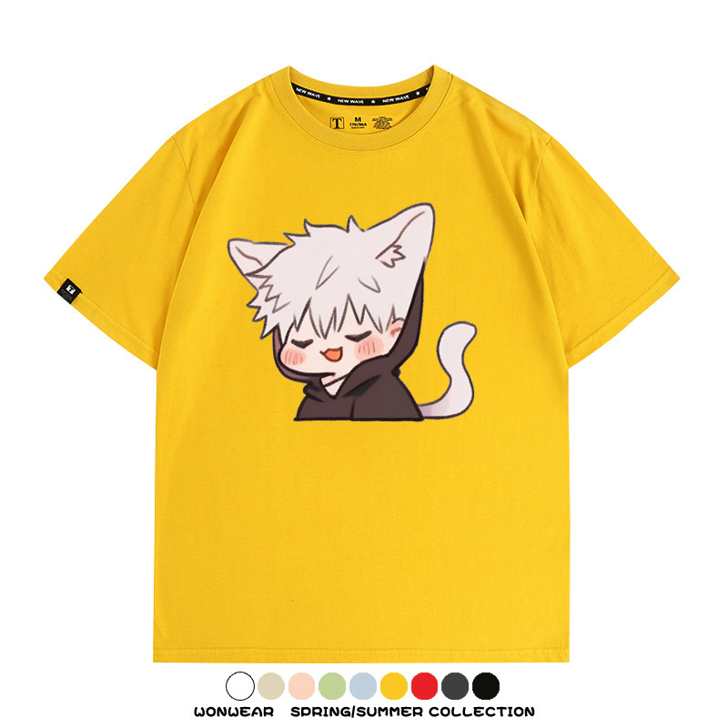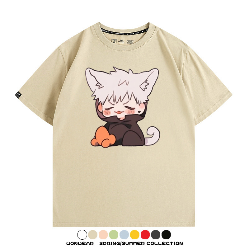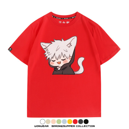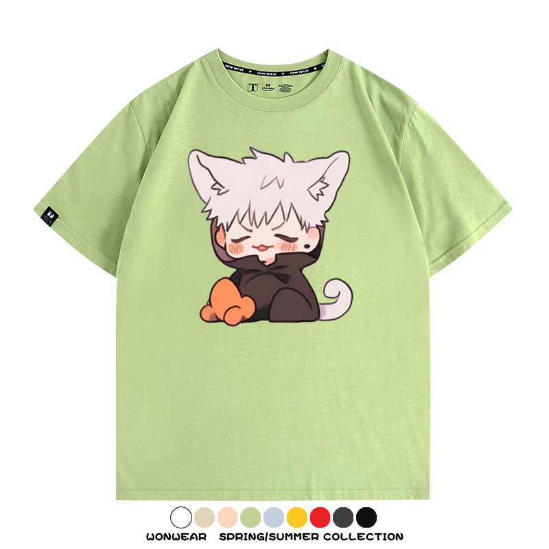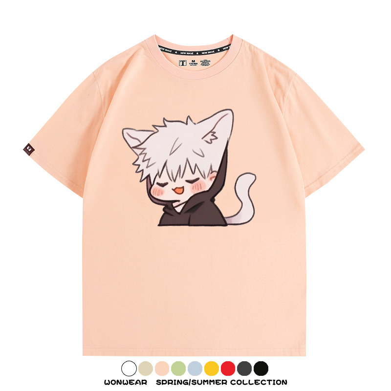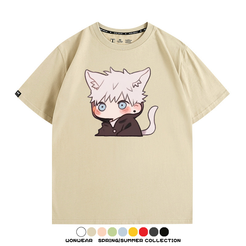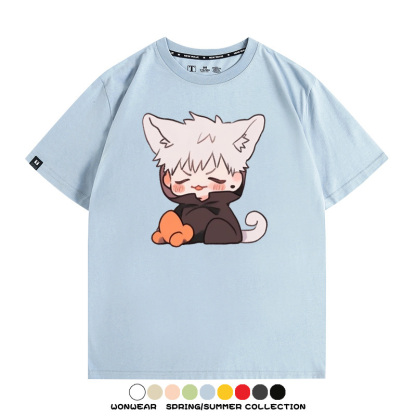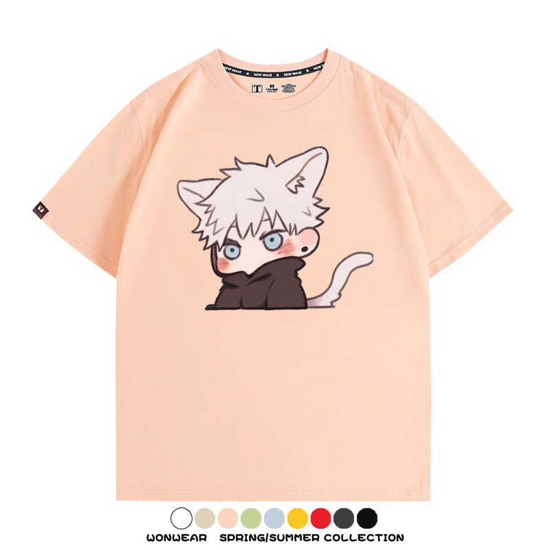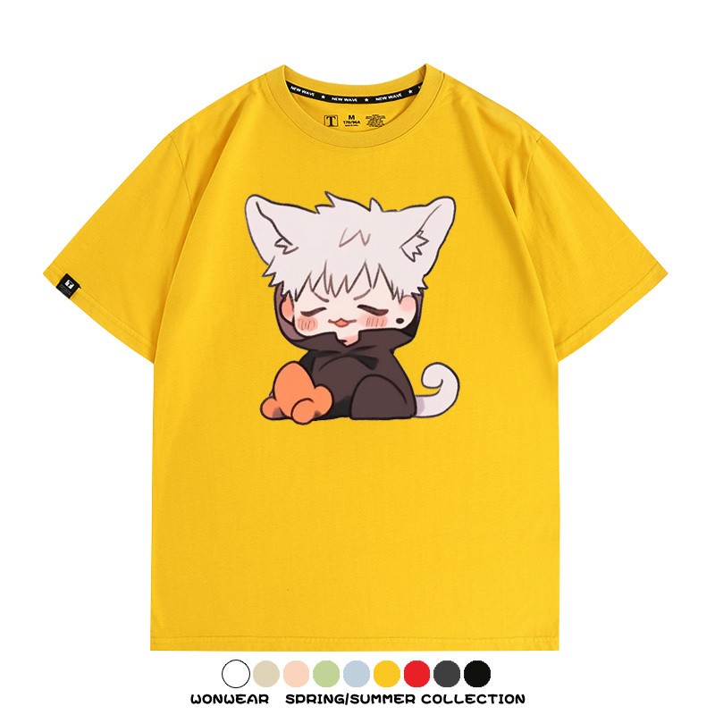 Spell Return Anime Cat Gojo Satoru Cute Cartoon Couple Peripheral Short Sleeve Summer Men's Pure Cotton T-Shirt Loose