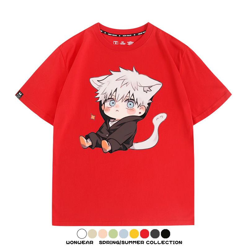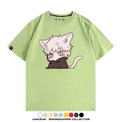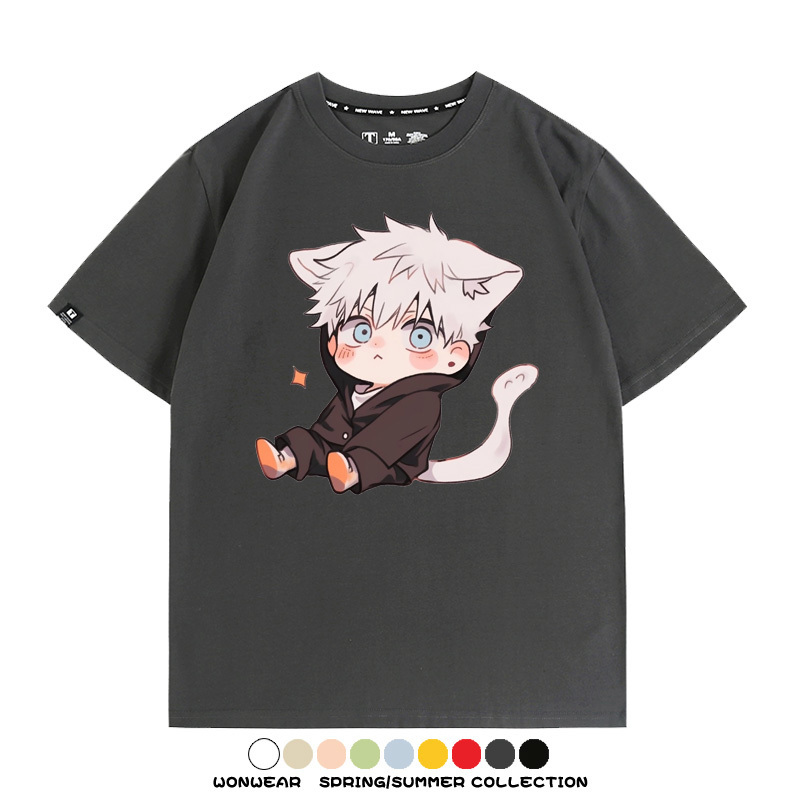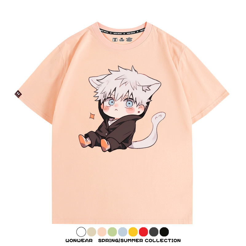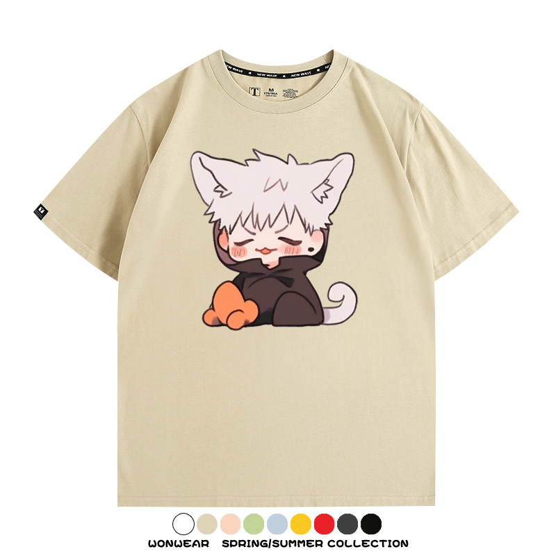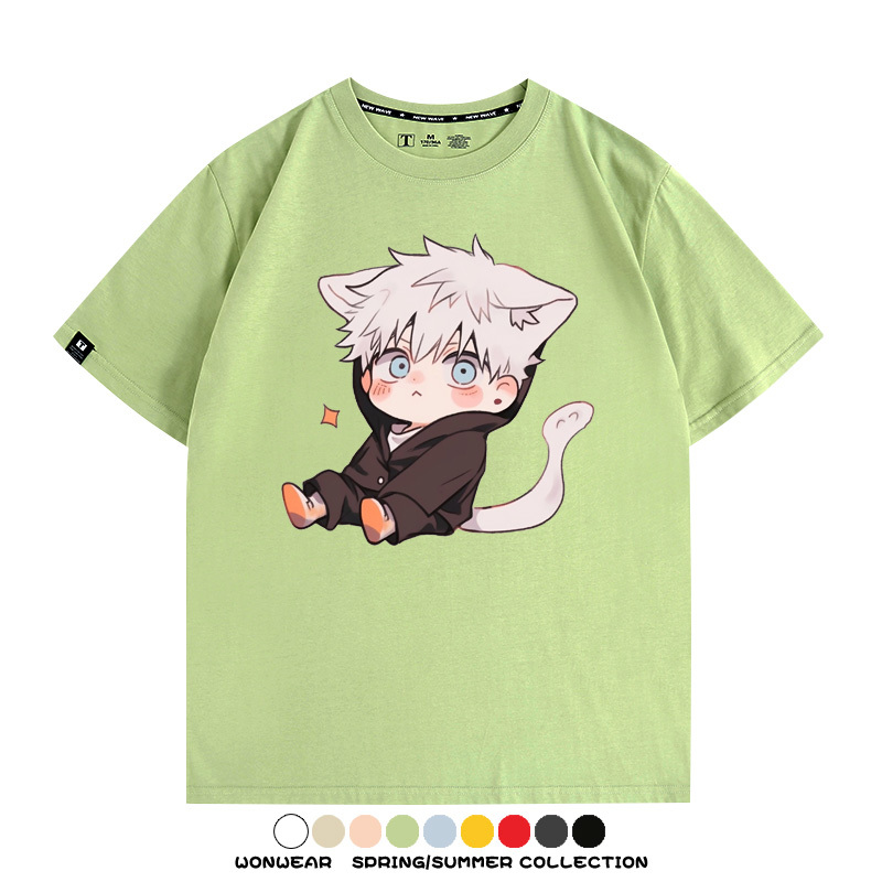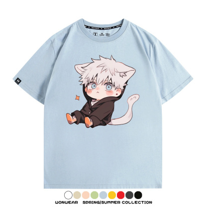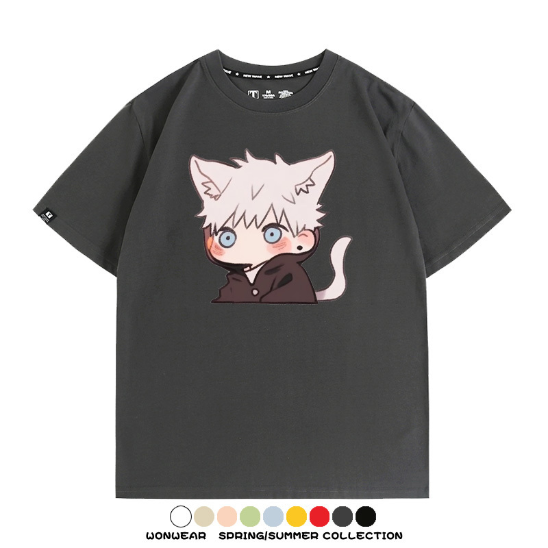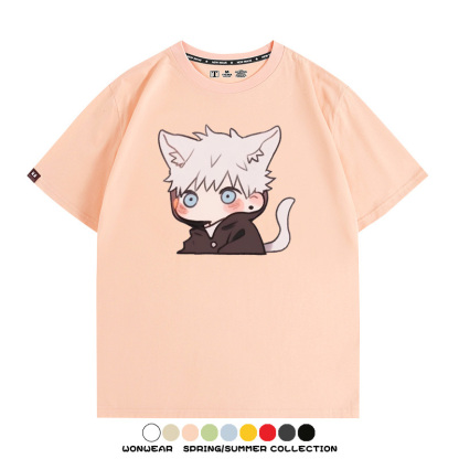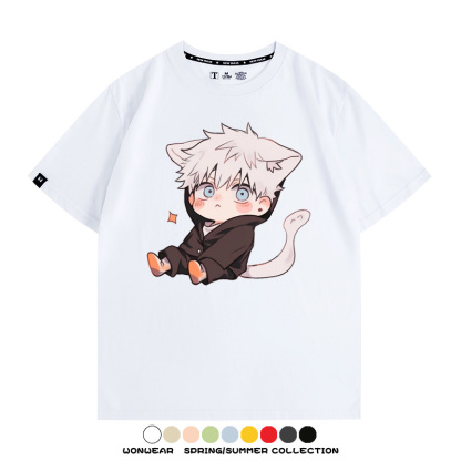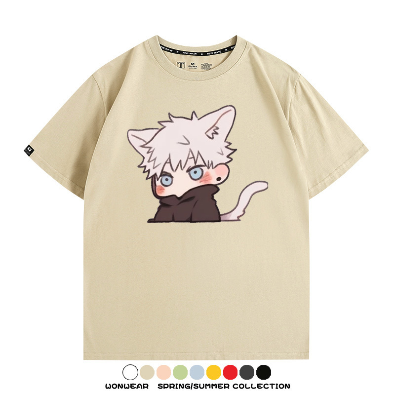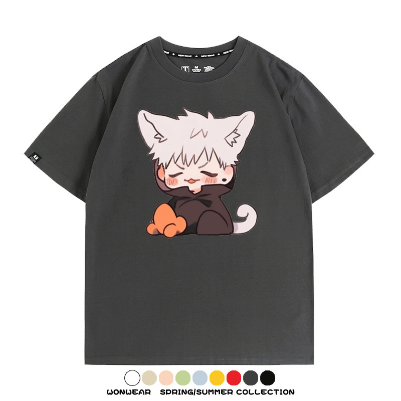 Spell Return Anime Cat Gojo Satoru Cute Cartoon Couple Peripheral Short Sleeve Summer Men's Pure Cotton T-Shirt Loose