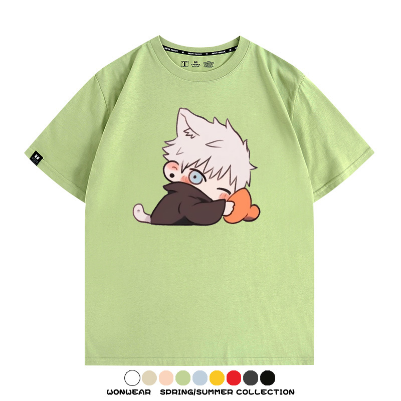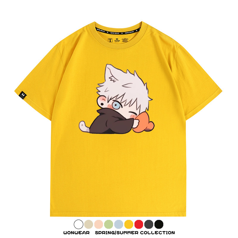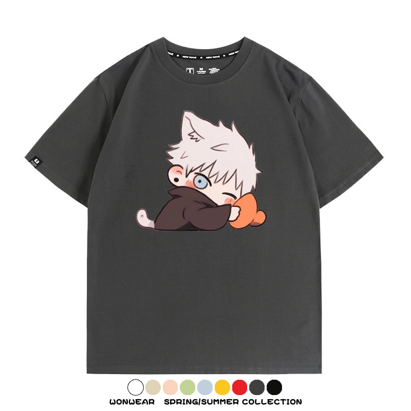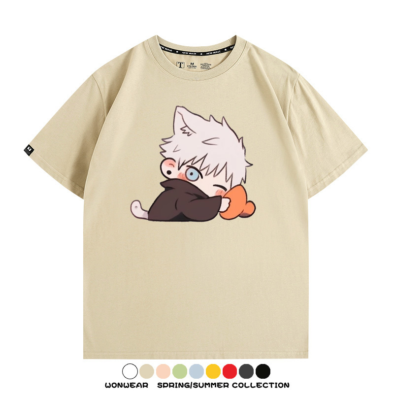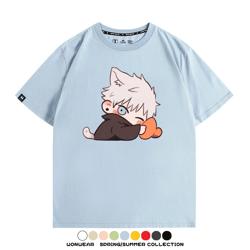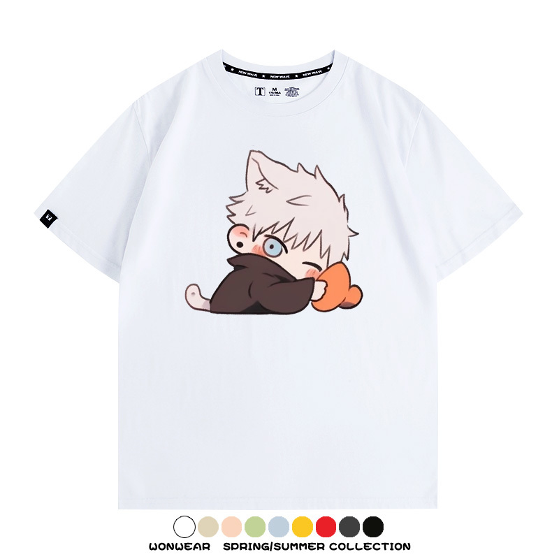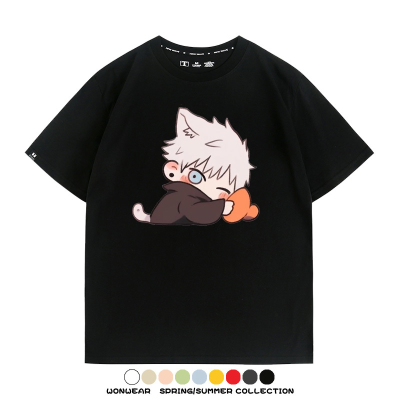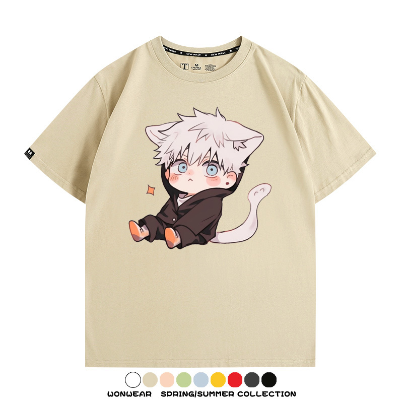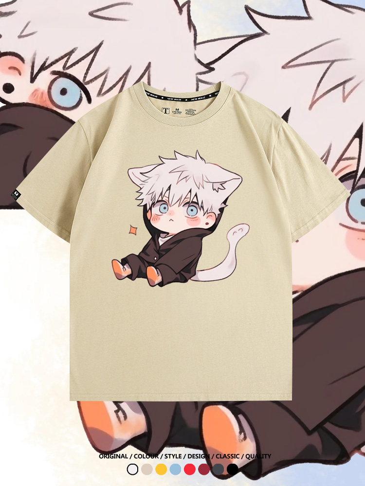 Spell Return Anime Cat Gojo Satoru Cute Cartoon Couple Peripheral Short Sleeve Summer Men's Pure Cotton T-Shirt Loose