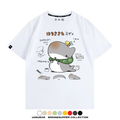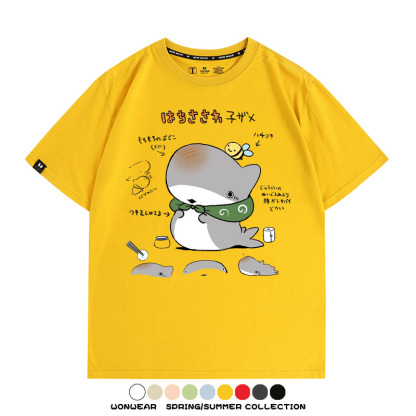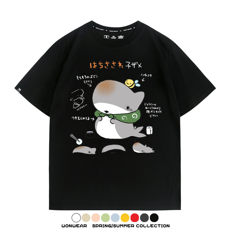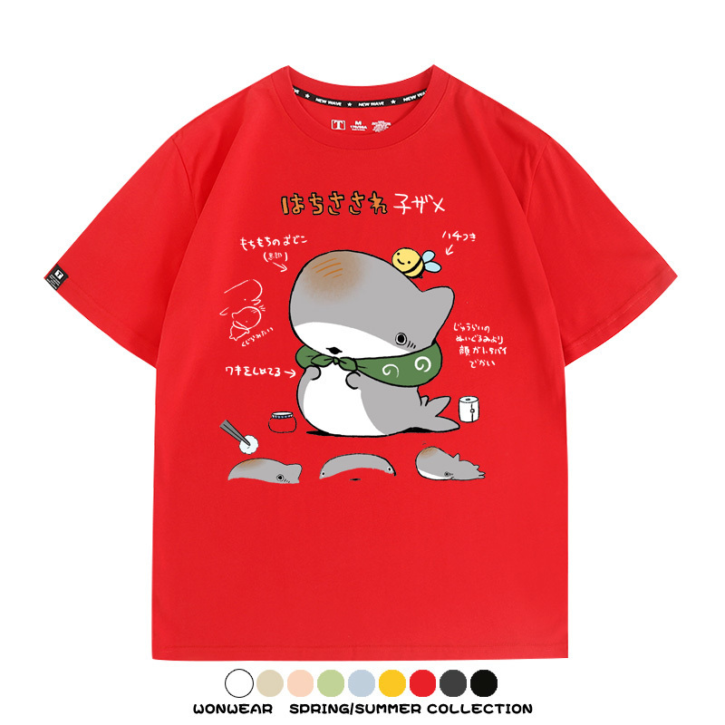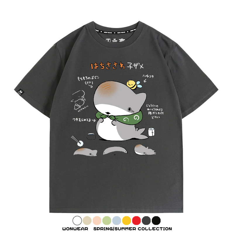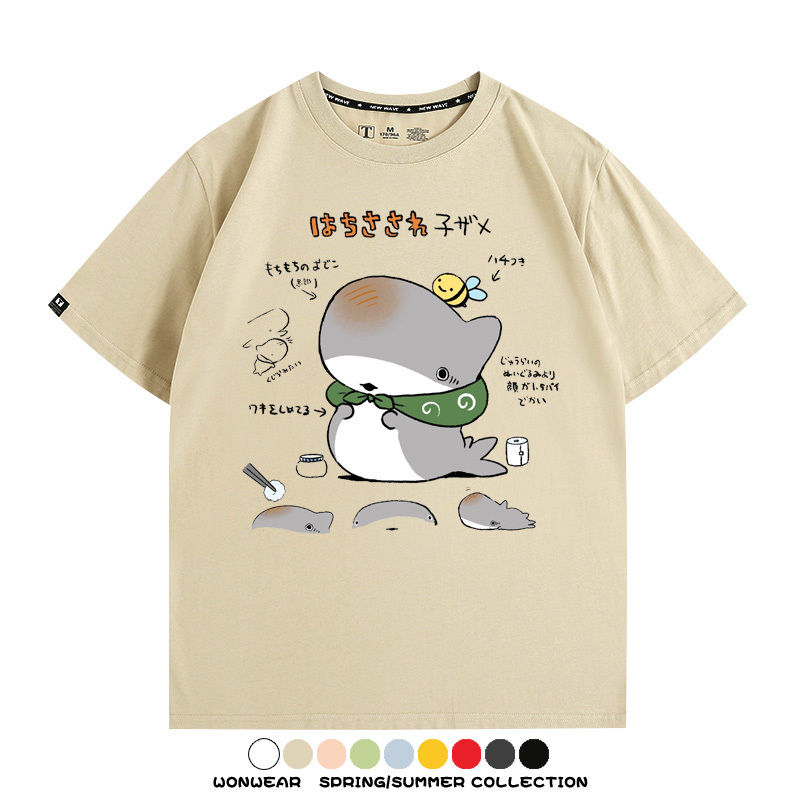 Travel Shark Cartoon Cute Japanese Anime Comic Peripheral Couple Short Sleeve Summer Men's Trendy Cotton T-shirt Loose