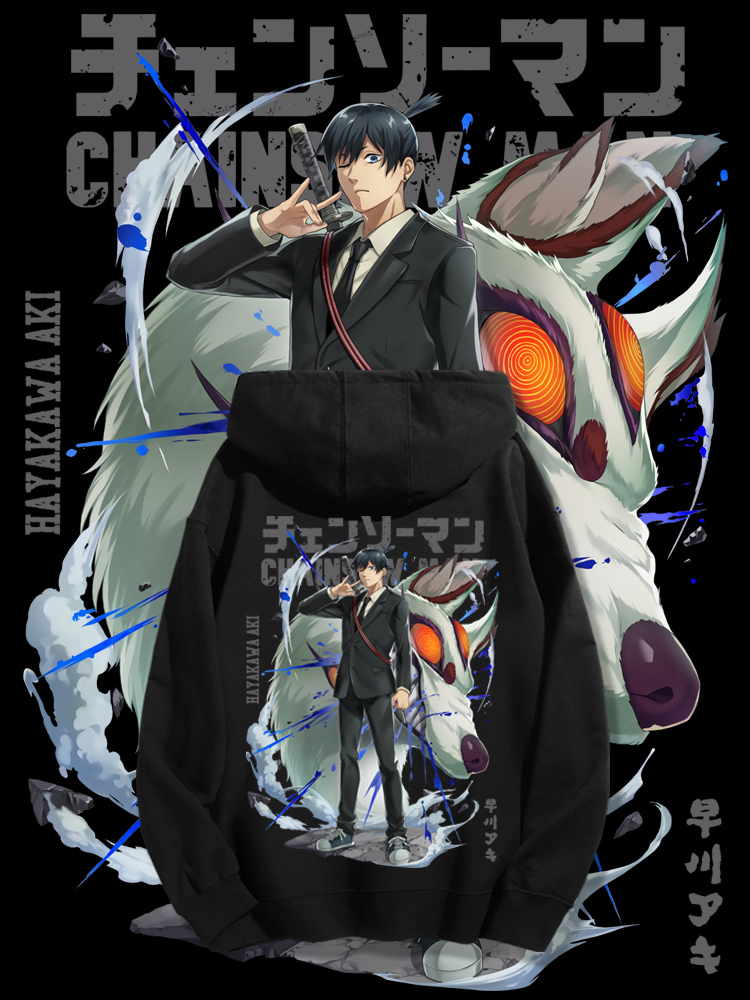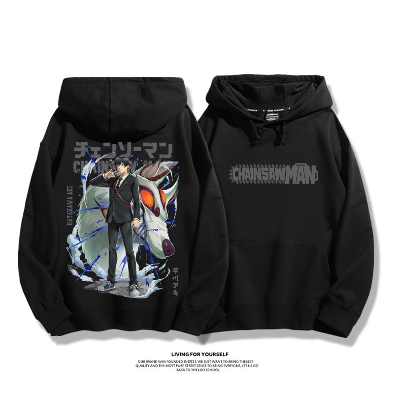 Chainsaw Man Hayakawa Aki 2024 Autumn and Winter New Parent-child Couple Wear Thin Velvet Hooded Sweatshirt