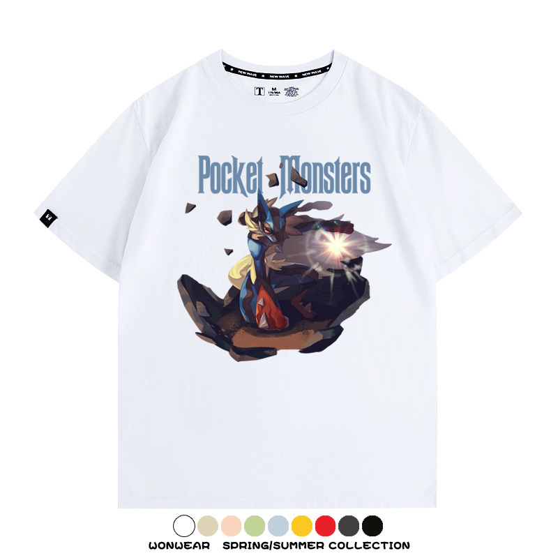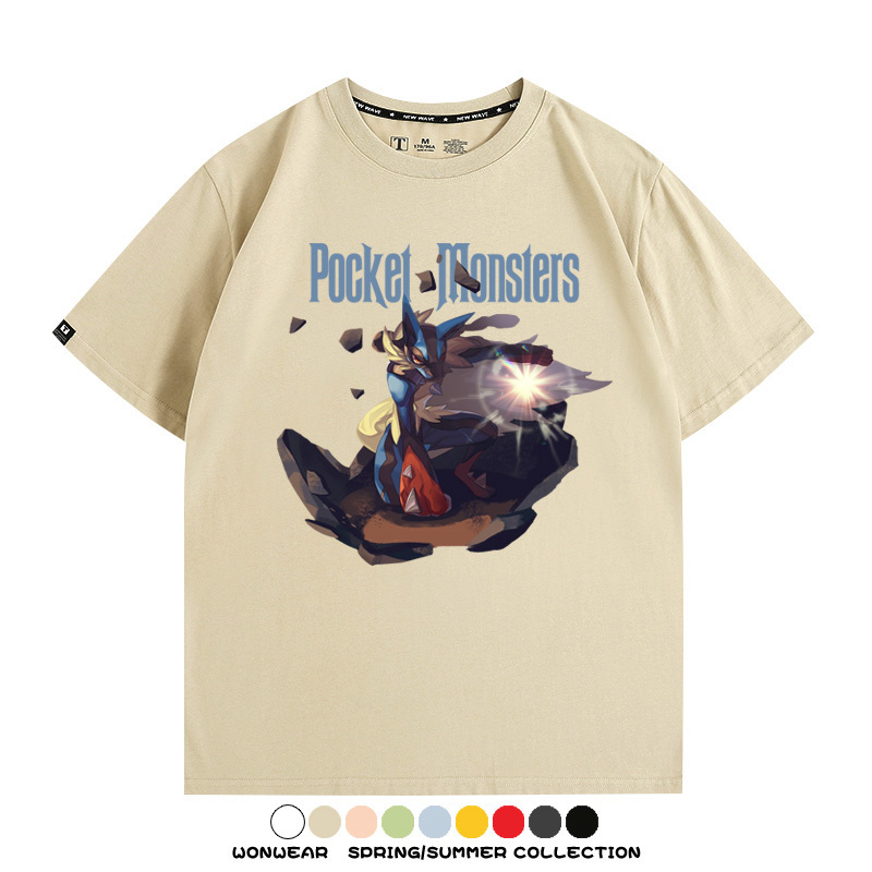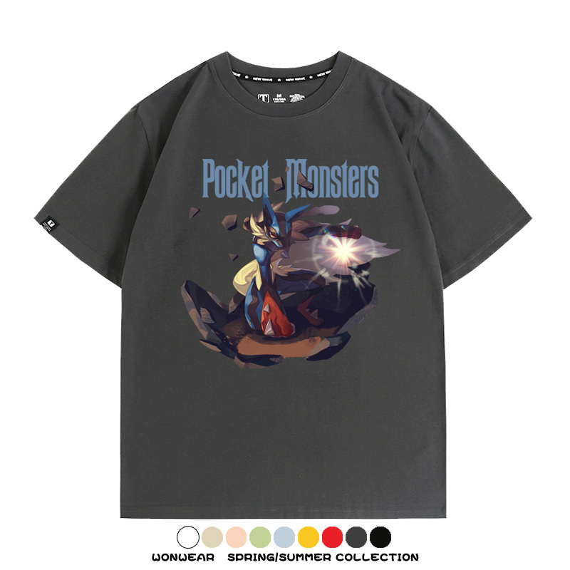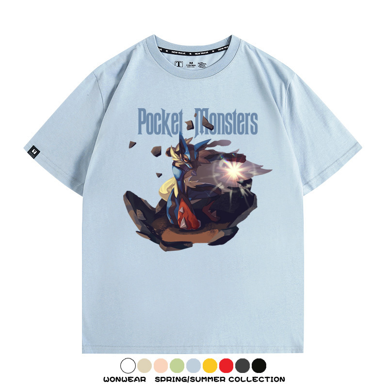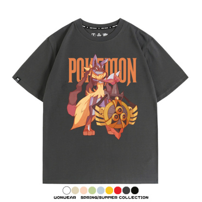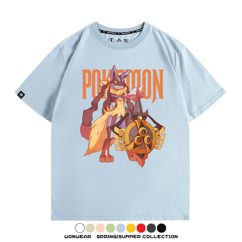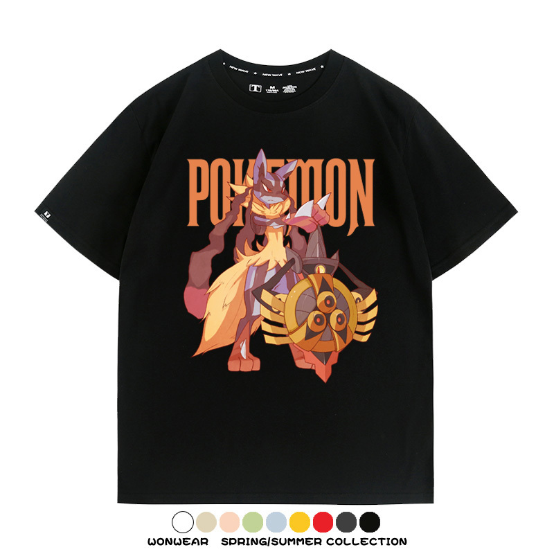 Pokemon Lucario joint game peripheral cartoon couple short-sleeved top summer men's cotton T-shirt