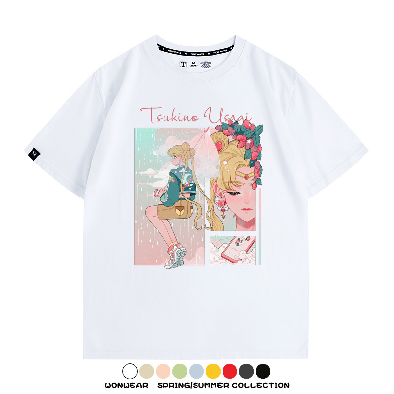 Sailor Moon co-branded t-shirt Japanese cartoon anime Tsukino Usagi peripheral pure cotton short-sleeved summer loose and versatile