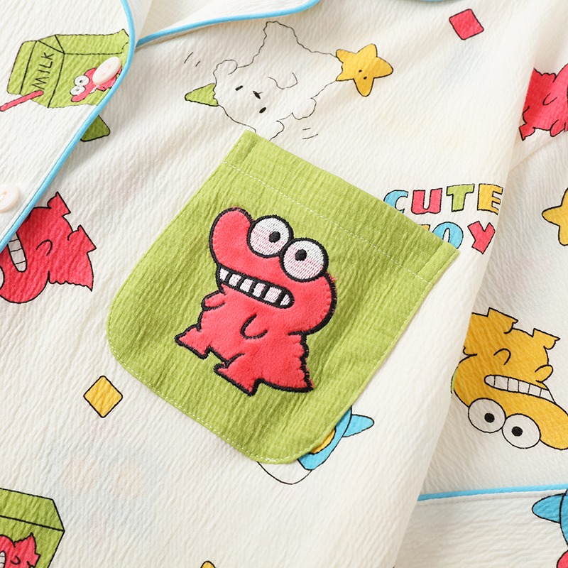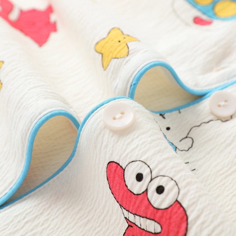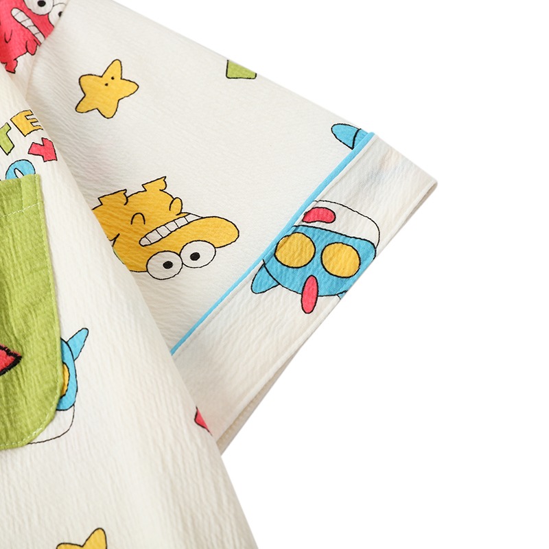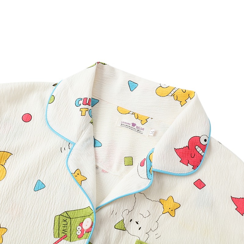 Japanese cute new pajamas for women summer short-sleeved T-shirt cartoon pure cotton gauze couple men's home wear cotton gauze
