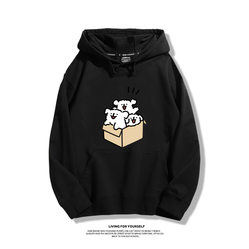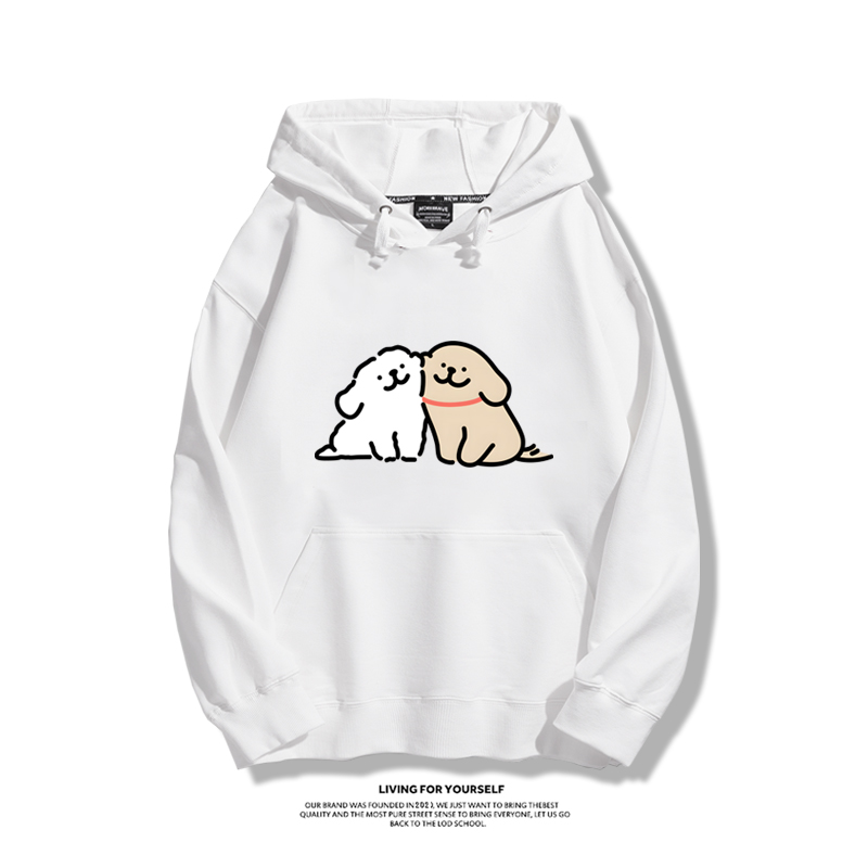 Line puppy hand-painted joint sweatshirt 2024 autumn and winter new parent-child couple wear thin velvet hooded sweatshirt