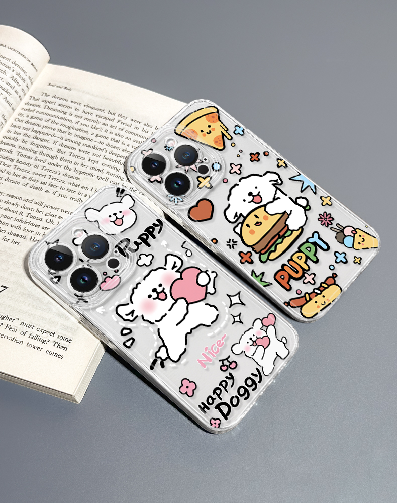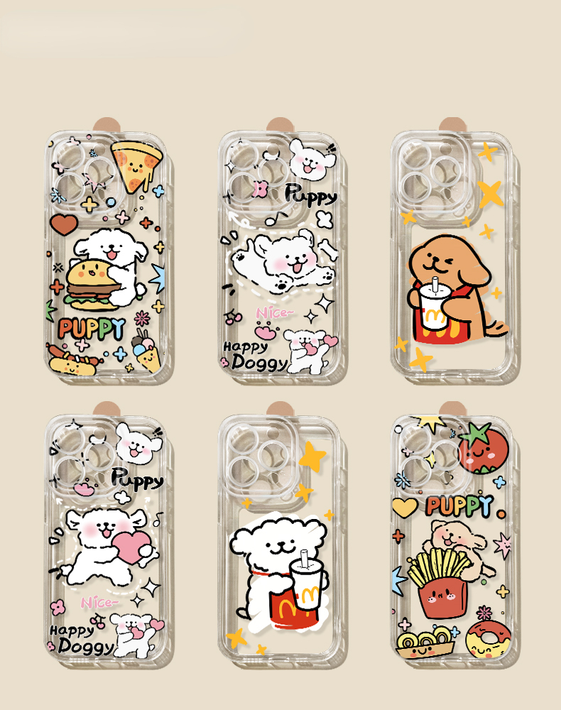 蘋果 系列線條小狗 彩色透明防摔軟殼